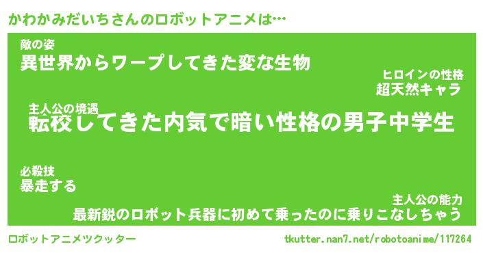 | 男性向けラノベタイトル風あだ名 | 『かわかみだいちの憂鬱』 |