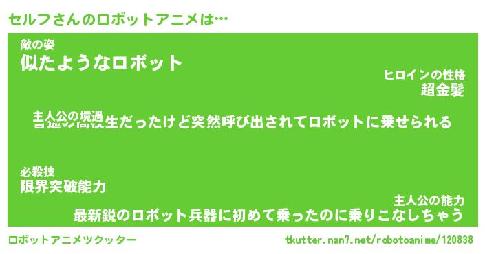 | 男性向けラノベタイトル風あだ名 | 『セルフの憂鬱』 |