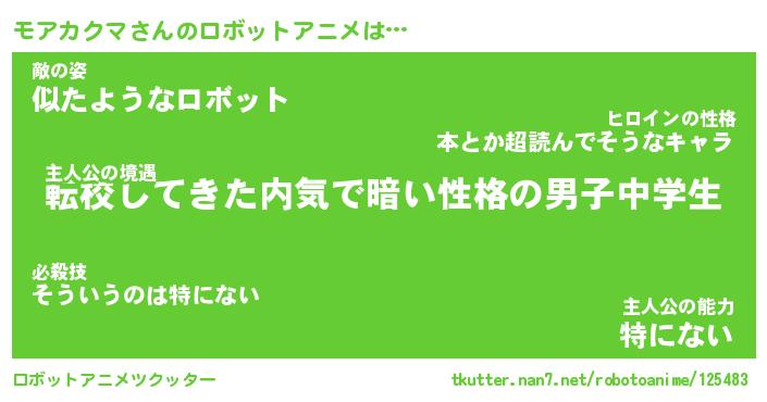 | ヒーロー風カッコイイあだ名 | 『スーパーモアカクマ』『銀牙騎士モア』 |