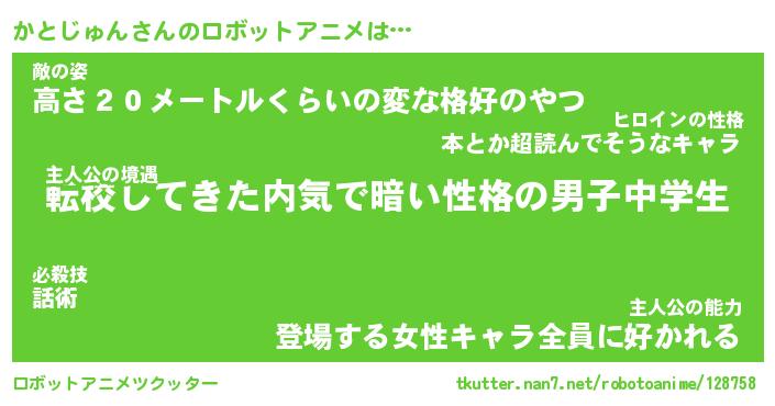 | 男性向けラノベタイトル風あだ名 | 『かとじゅんの憂鬱』 |