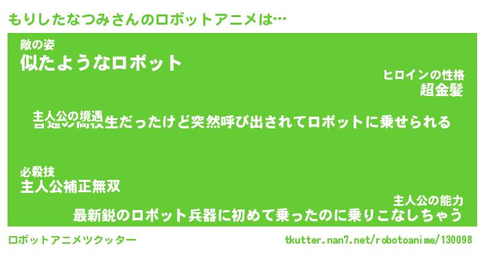 | 男性向けラノベタイトル風あだ名 | 『もりしたなつみの憂鬱』 |