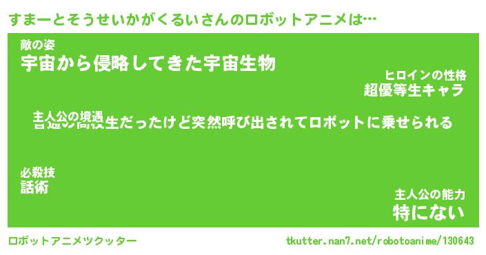| 男性向けラノベタイトル風あだ名 | 『すまーとそうせいかがくるいの憂鬱』 |