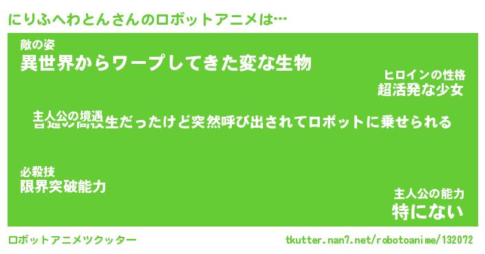 | 男性向けラノベタイトル風あだ名 | 『にりふへわとんの憂鬱』 |