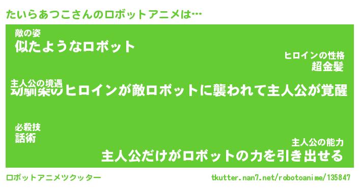 | ヒーロー風カッコイイあだ名 | 『スーパータイラアツコ』『銀牙騎士タイ』 |