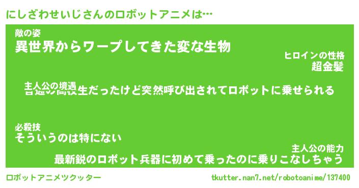 | 男性向けラノベタイトル風あだ名 | 『にしざわせいじの憂鬱』 |