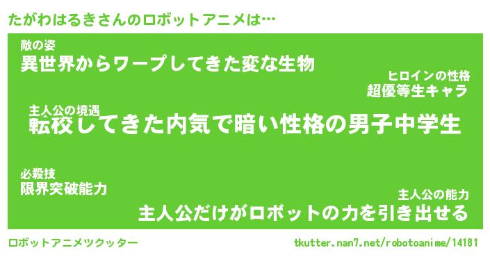 | 男性向けラノベタイトル風あだ名 | 『たがわはるきの憂鬱』 |