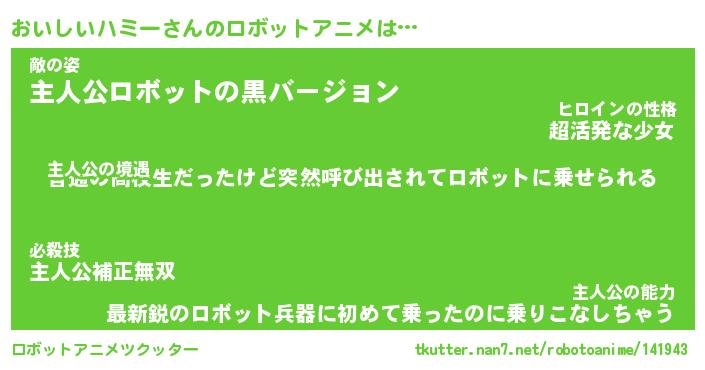 | 男性向けラノベタイトル風あだ名 | 『おいしいハミーの憂鬱』 |