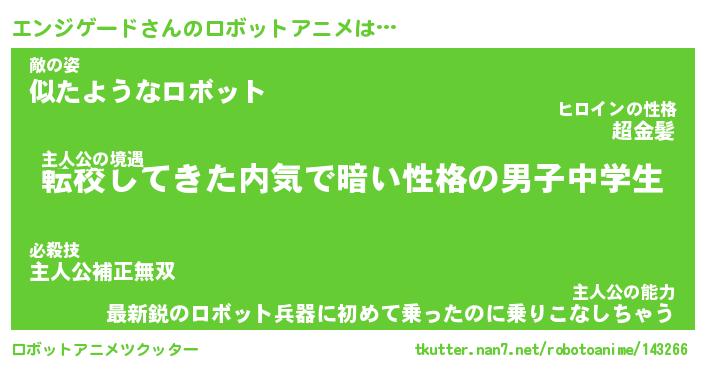 | 男性向けラノベタイトル風あだ名 | 『エンジゲードの憂鬱』 |