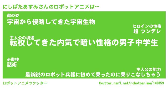 | 男性向けラノベタイトル風あだ名 | 『にしばたあすみの憂鬱』 |