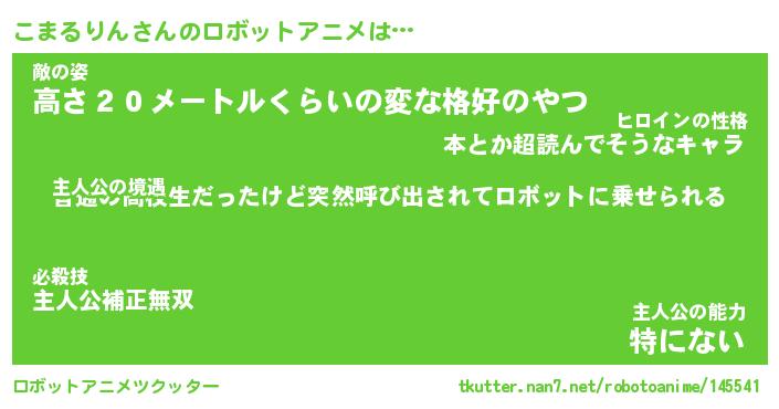 | 男性向けラノベタイトル風あだ名 | 『こまるりんの憂鬱』 |