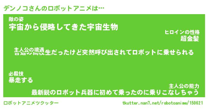 | 男性向けラノベタイトル風あだ名 | 『デンノコの憂鬱』 |