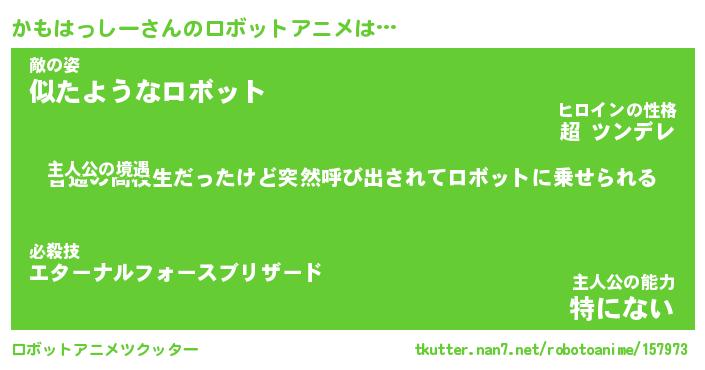 | 男性向けラノベタイトル風あだ名 | 『かもはっしーの憂鬱』 |