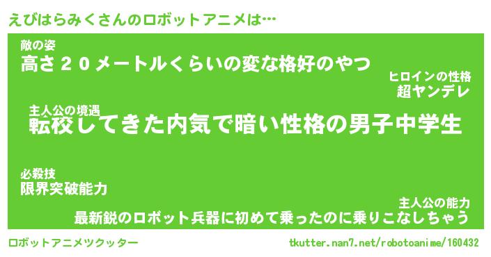 | 胡散臭い通販商品みたいなあだ名 | 『必ず成功するブレスレット…その名も「えびはらみく」』 |