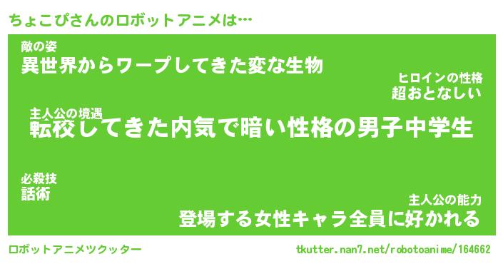 | 女子向けラノベタイトル風あだ名 | 『(仮)ちょこぴのやんごとなき事情』 |