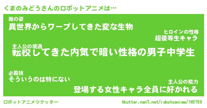 | 男性向けラノベタイトル風あだ名 | 『くまのみどうの憂鬱』 |