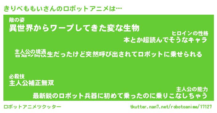 | 男性向けラノベタイトル風あだ名 | 『きりべももいの憂鬱』 |