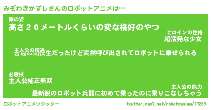 | 男性向けラノベタイトル風あだ名 | 『みぞわきかずしの憂鬱』 |