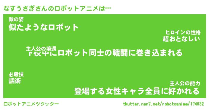 | ヒーロー風カッコイイあだ名 | 『スーパーナスウサギ』『天弓騎士ナス』 |