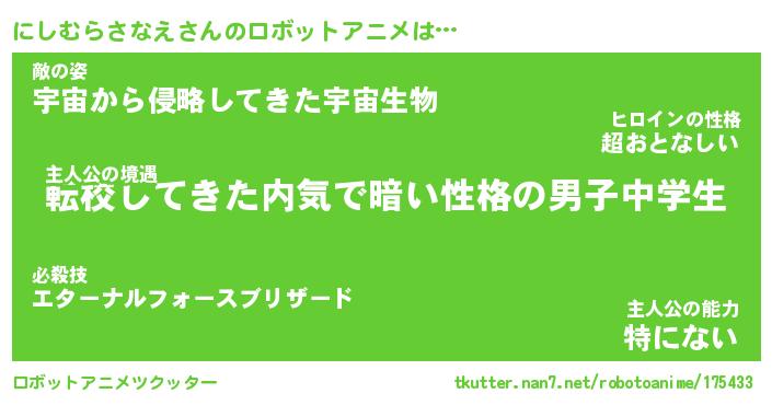 | ヒーロー風カッコイイあだ名 | 『スーパーニシムラサナエ』 |