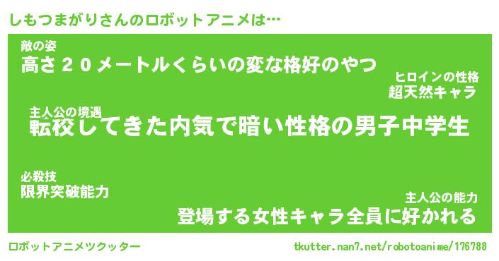 | 男性向けラノベタイトル風あだ名 | 『しもつまがりの憂鬱』 |
