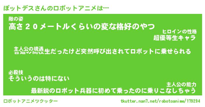 | 男性向けラノベタイトル風あだ名 | 『ぽットデスの憂鬱』 |