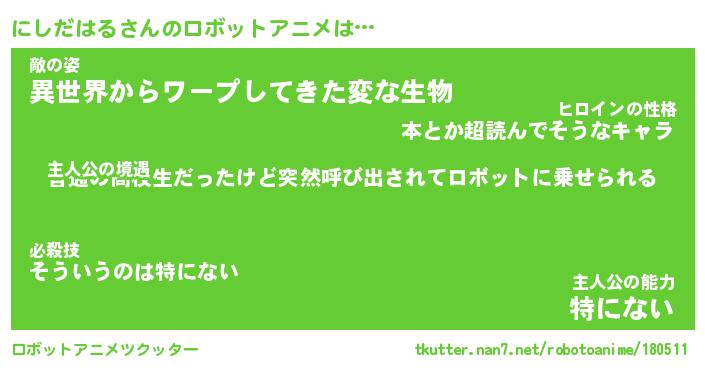 | 男性向けラノベタイトル風あだ名 | 『にしだはるの憂鬱』 |