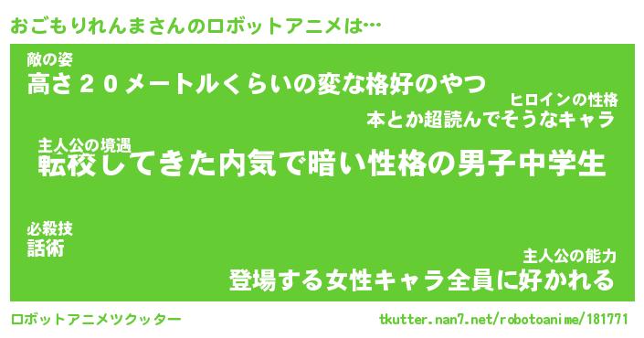 | 男性向けラノベタイトル風あだ名 | 『おごもりれんまの憂鬱』 |
