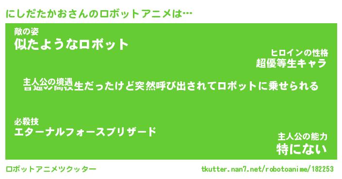 | 男性向けラノベタイトル風あだ名 | 『にしだたかおの憂鬱』 |