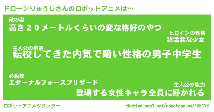 | 男性向けラノベタイトル風あだ名 | 『ドローンりゅうじの憂鬱』 |