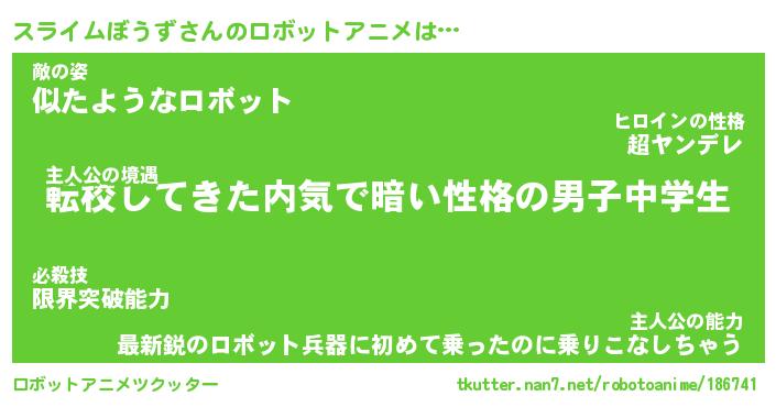 | 男性向けラノベタイトル風あだ名 | 『スライムぼうずの憂鬱』 |
