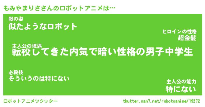 | 男性向けラノベタイトル風あだ名 | 『もみやまりさの憂鬱』 |