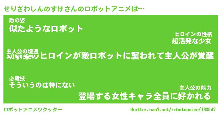 | 胡散臭い通販商品みたいなあだ名 | 『億万長者になれるブレスレット…その名も「せりざわしんのすけ」』 |