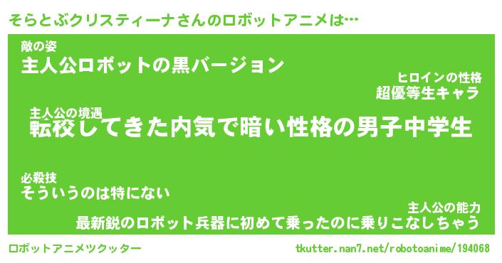 | 男性向けラノベタイトル風あだ名 | 『そらとぶクリスティーナの憂鬱』 |