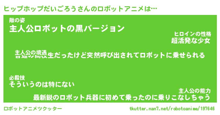 | 胡散臭い通販商品みたいなあだ名 | 『必ず成功する霊験あらたかなお札…その名も「ヒップホップだいごろう」』 |