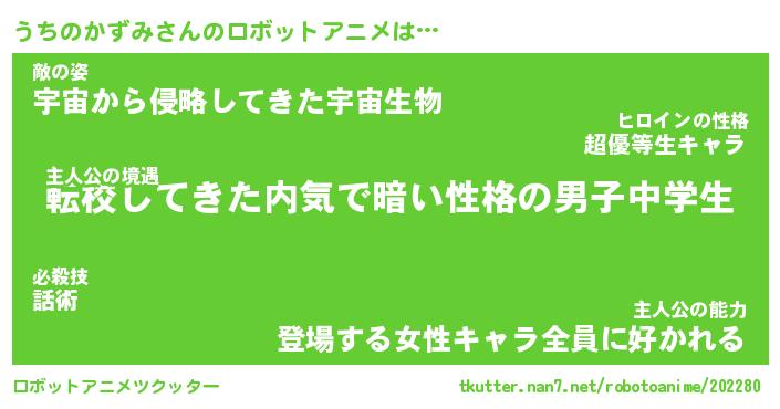 | 男性向けラノベタイトル風あだ名 | 『うちのかずみの憂鬱』 |