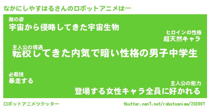 | 男性向けラノベタイトル風あだ名 | 『なかにしやすはるの憂鬱』 |