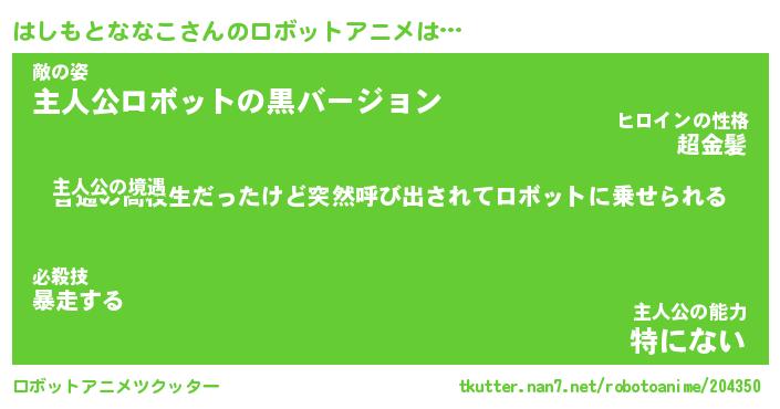 | 男性向けラノベタイトル風あだ名 | 『はしもとななこの憂鬱』 |