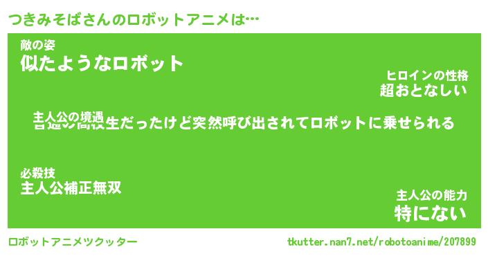 つきみそばさんのロボットアニメは… 主人公の境遇『普通の高校生だったけど突然呼び出されてロボットに乗せられる』敵の姿『似たようなロボット』主人公の能力『特にない』 ツクッター #ロボットアニメツクッター http://tkutter.nan7.net/robotoanime/207899/
