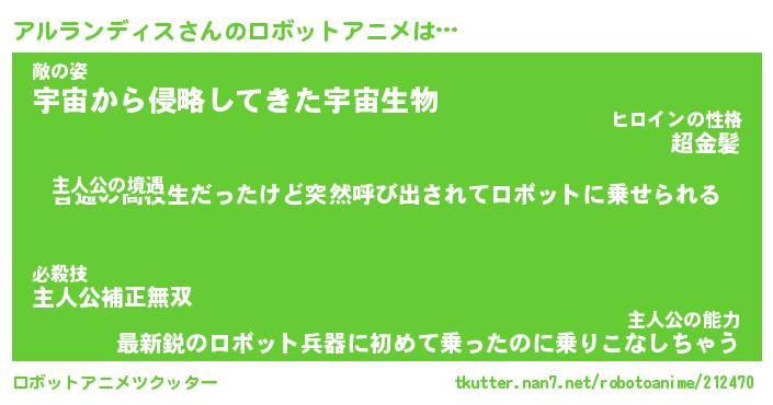 | 料理風あだ名 | 『節約★アルランディスと油揚げの玉子丼』 |