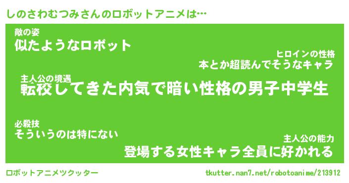 | 男性向けラノベタイトル風あだ名 | 『しのさわむつみの憂鬱』 |