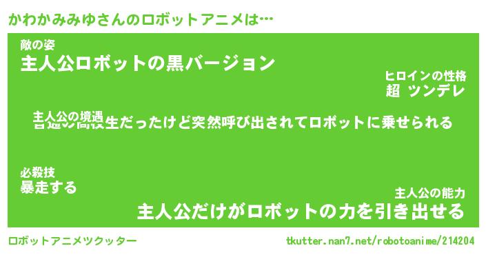 | 男性向けラノベタイトル風あだ名 | 『かわかみみゆの憂鬱』 |