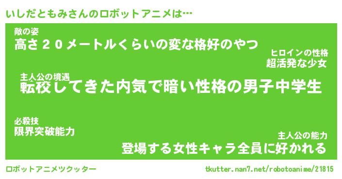 | ヒーロー風カッコイイあだ名 | 『スーパーイシダトモミ』『天弓騎士イシ』 |