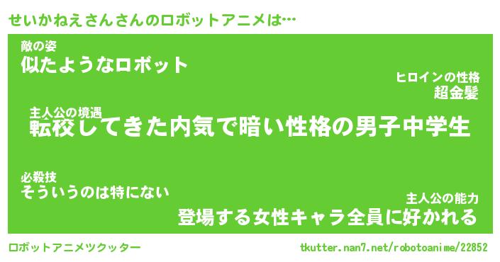 | 男性向けラノベタイトル風あだ名 | 『せいかねえさんの憂鬱』 |