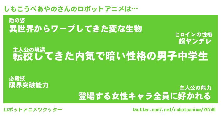 | 男性向けラノベタイトル風あだ名 | 『しもこうべあやのの憂鬱』 |