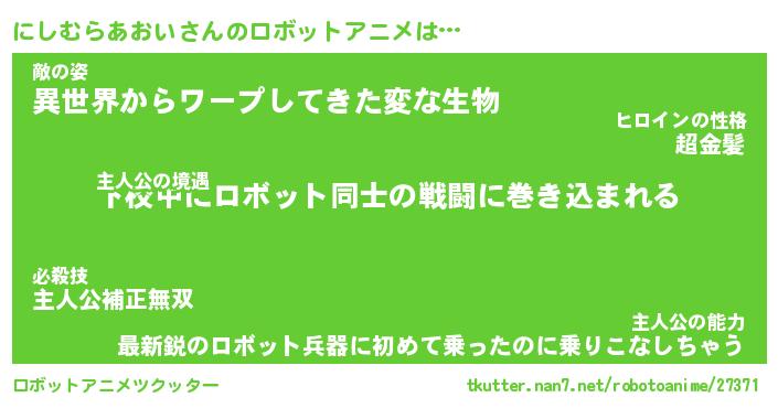 | 男性向けラノベタイトル風あだ名 | 『ニシムラアオイアートオンライン』 |