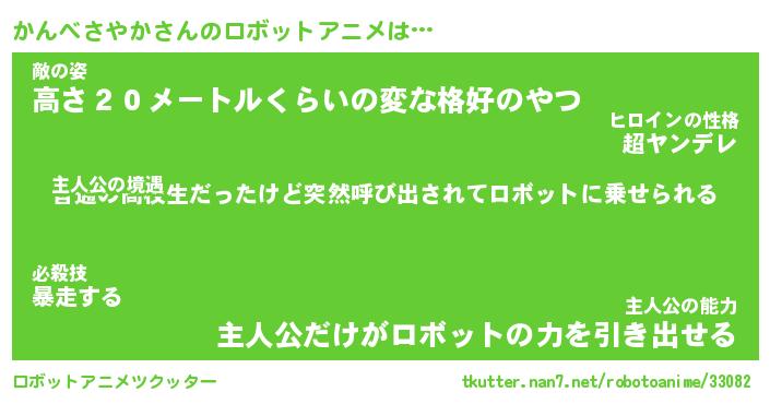 かんべさやかさんのロボットアニメは… 主人公の境遇『普通の高校生だったけど突然呼び出されてロボットに乗せられる』敵の姿『高さ20メートルくらいの変な格好のやつ』主人公の能力『主人公だけがロボットの力を引き出せる』 ツクッター #ロボットアニメツクッター http://tkutter.nan7.net/robotoanime/33082/