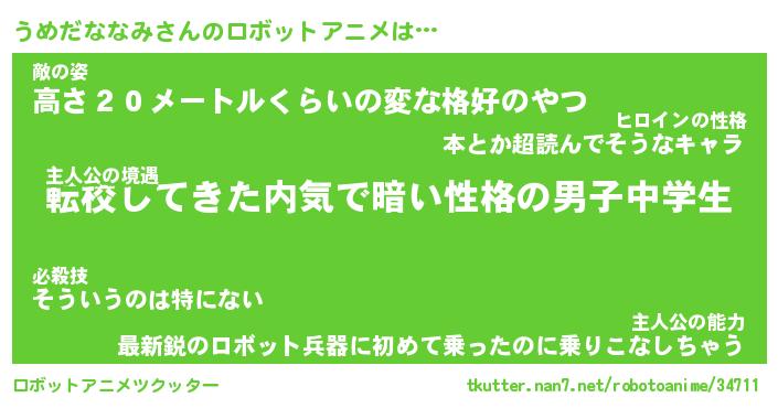 | 男性向けラノベタイトル風あだ名 | 『うめだななみの憂鬱』 |