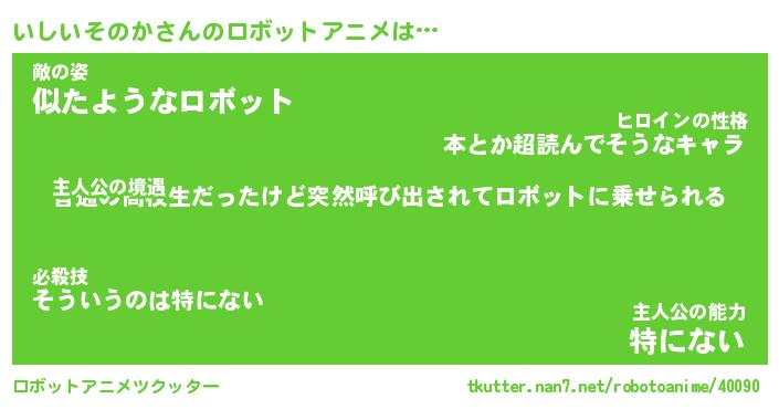 いしいそのかさんのロボットアニメは… 主人公の境遇『普通の高校生だったけど突然呼び出されてロボットに乗せられる』敵の姿『似たようなロボット』主人公の能力『特にない』 ツクッター #ロボットアニメツクッター http://tkutter.nan7.net/robotoanime/40090/
