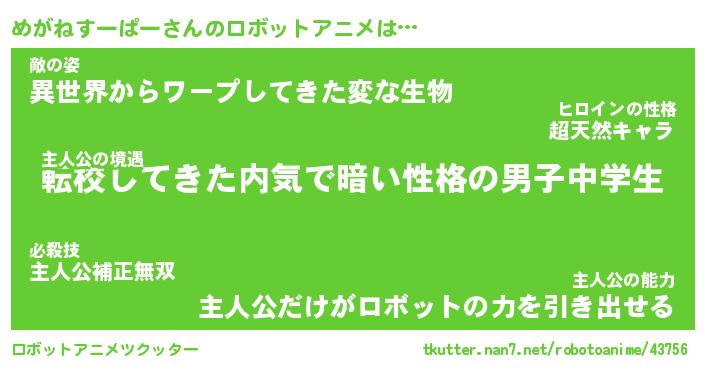| 男性向けラノベタイトル風あだ名 | 『めがねすーぱーの憂鬱』 |