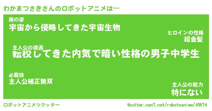 | 男性向けラノベタイトル風あだ名 | 『わかまつさきの憂鬱』 |